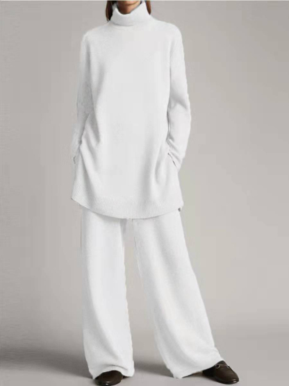 Women's High Neck Long Sleeve Top Loose Fit Pants Plain Matching Set