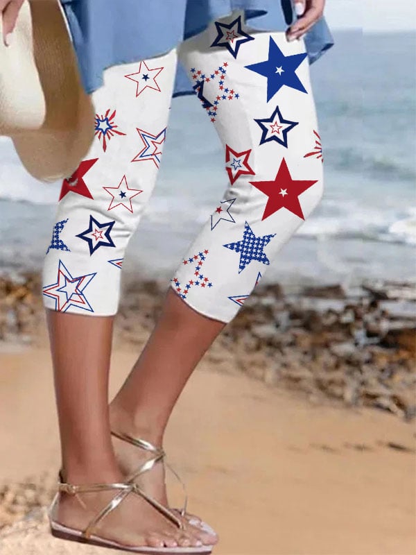 Women's Independence Day American Flag Stars Print Cropped Leggings