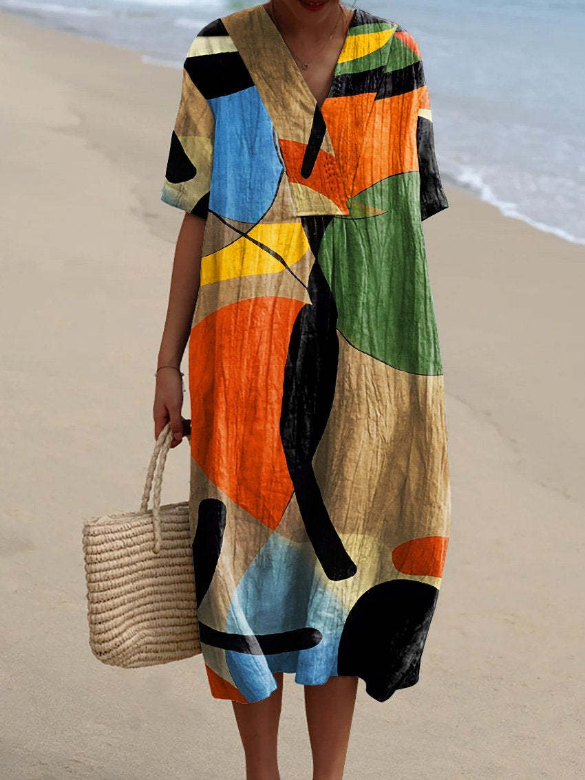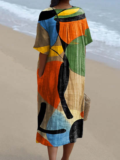 Women's Retro Minimalist Abstract Art Print Flowy Dress