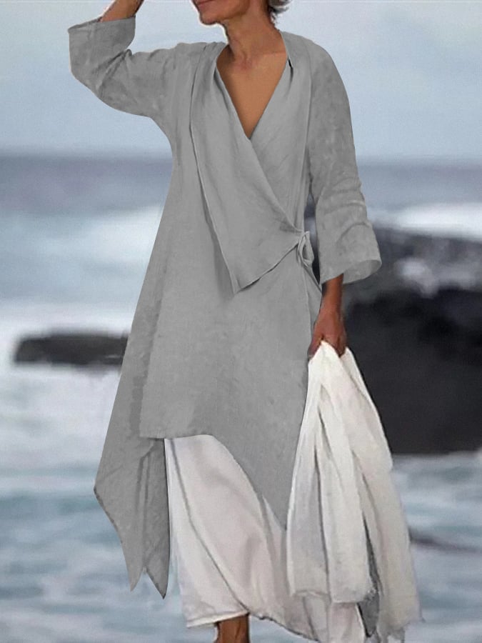 Women's solid color irregular tie shirt