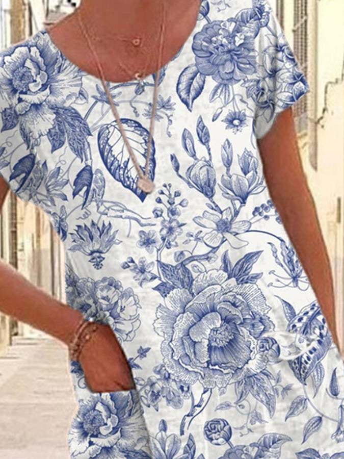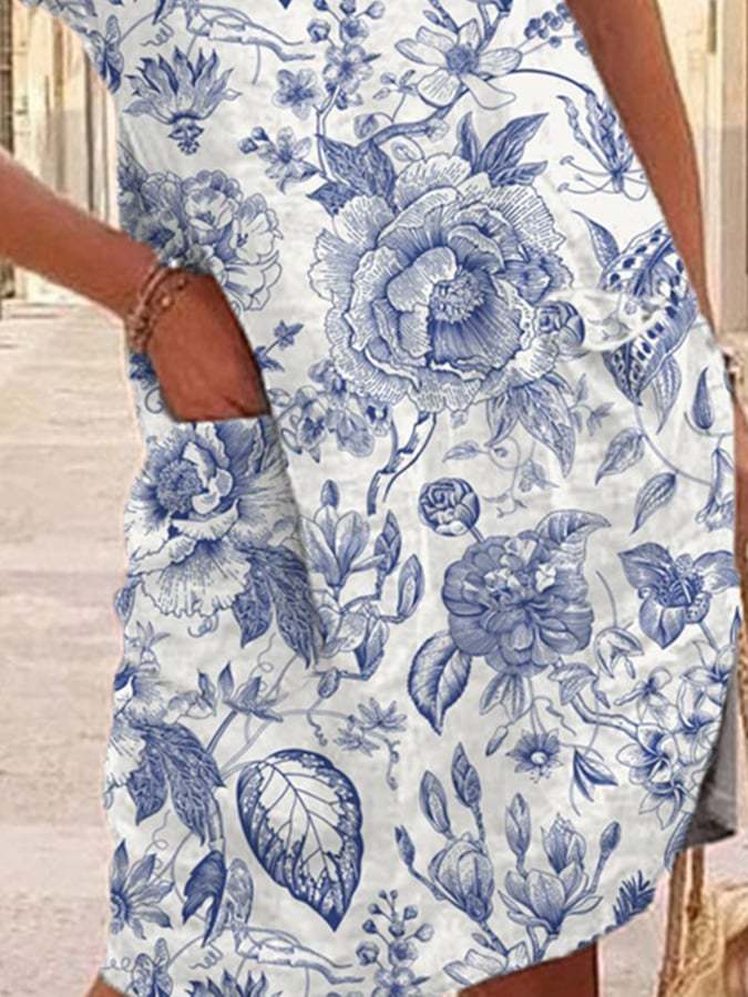 Women's Vintage Floral Print Pocket Dress