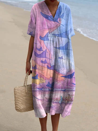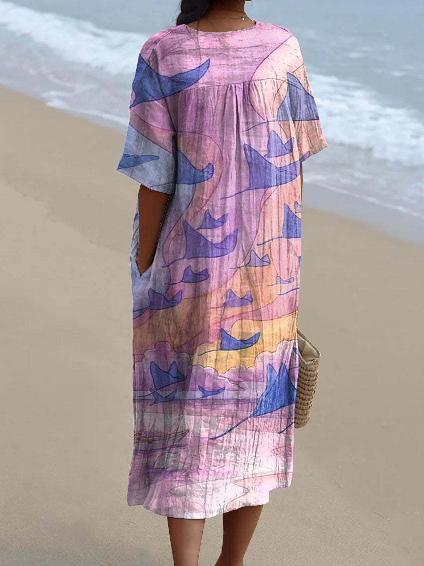 Women's Vintage Lovely Manta Rays Art Print Flowy Dress