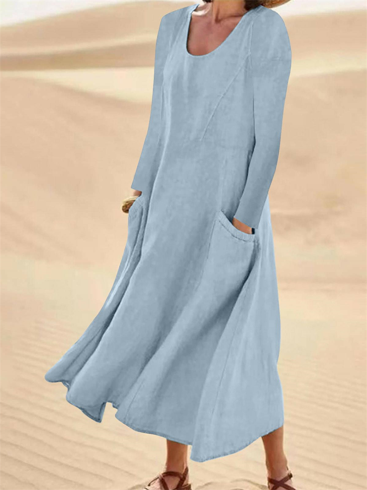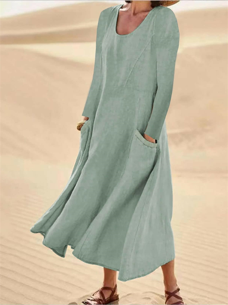 Deep Pockets Flowy Linen Cotton Maxi Dress