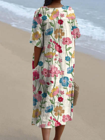 Women's Lovely Floral Art Print Casual Flowy Dress