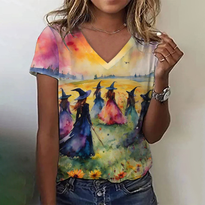 Women's Midsummer Witches Gather V Neck T-Shirt