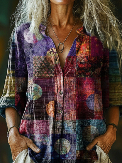 Women's Vintage Bohemian Patterns Art Print Casual Cotton Linen Shirt