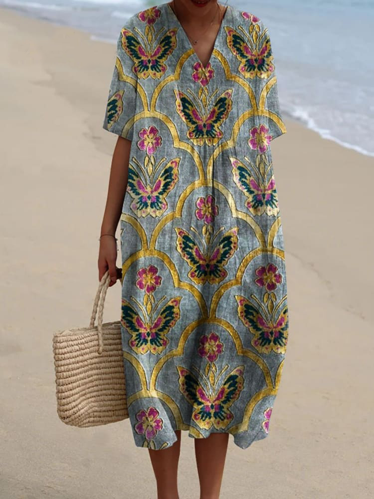 Women's Vintage Lovely Butterflies Art Print Flowy Dress