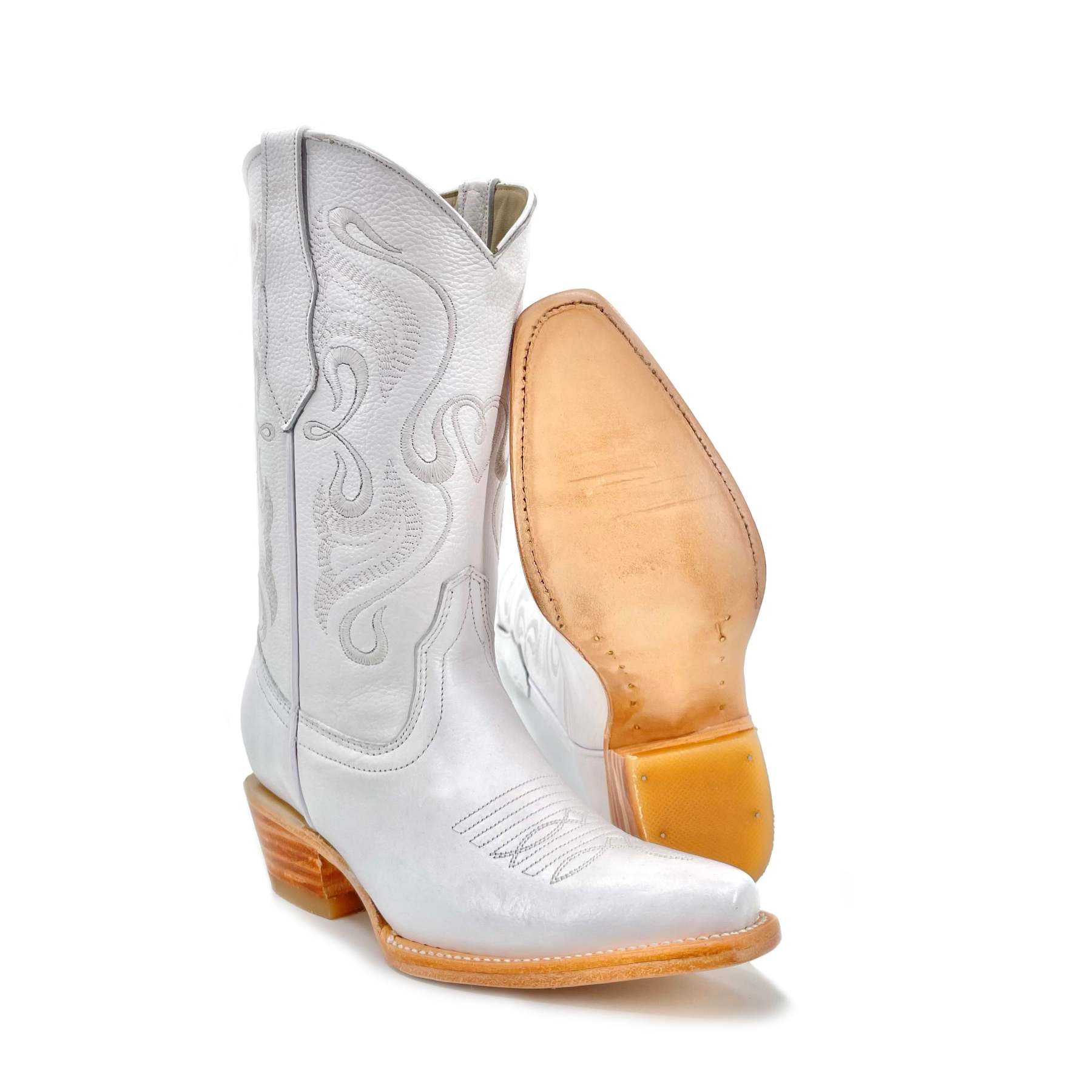 For a classic Western look, check out the Matilde Cowgirl White Boots. Constructed from leather, these mid-calf boots feature a timeless design perfect for any style. Comfort and durability make these boots an essential for any cowgirl.