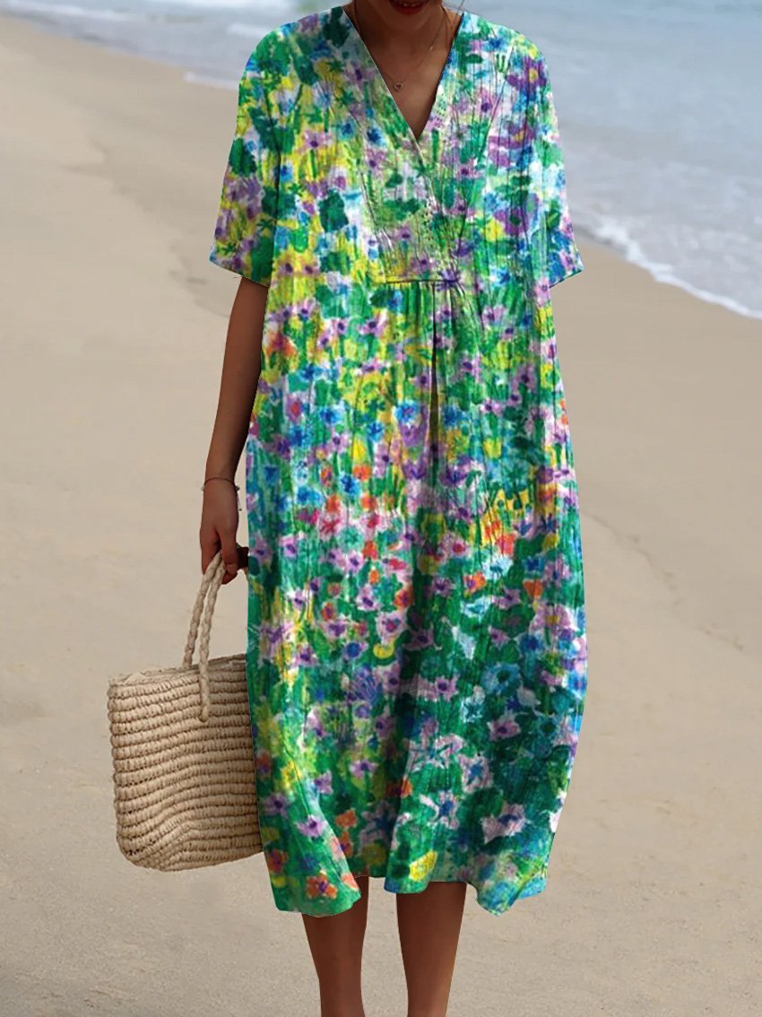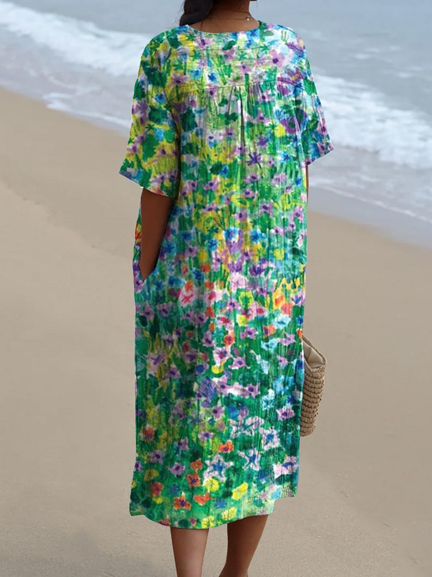 Oil Painting Summer Field Printed Women's Flowy Dress