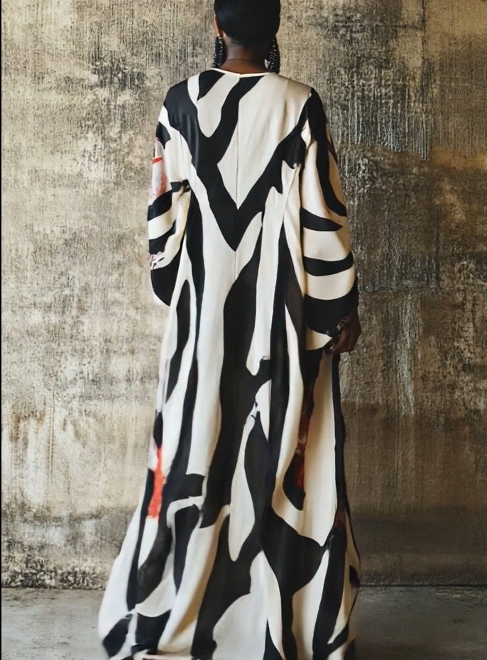 Loose and fluid fit: Designed for effortless movement, the loose, flowing silhouette drapes elegantly.