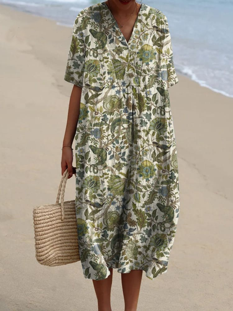 Vintage Style Jungle Pattern Printed Women's Flowy Dress