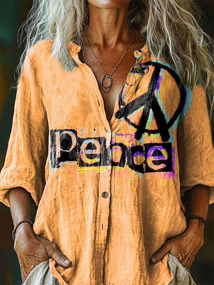 Women's Hippy Pattern Art Print Linen Cotton V-Neck Casual Shirt