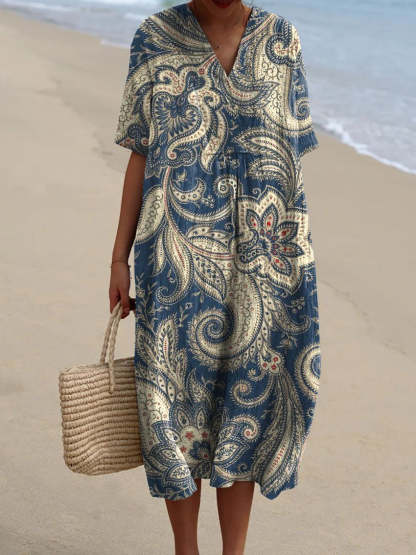 Women's Vintage Ethnic Floral Art Print Casual Flowy Dress