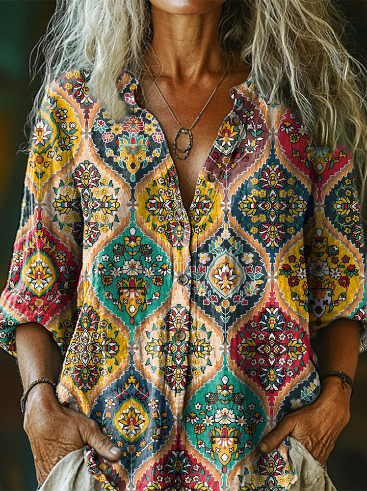 Women's Boho Ethnic Art Print Comfortable Long Sleeve Cotton Shirt