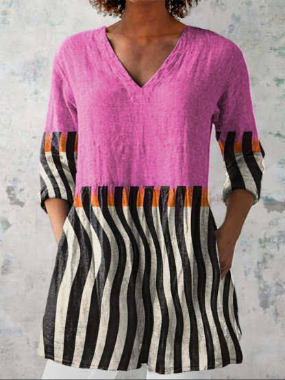 Style: CasualFit Type: FitShirt Length: Over HipSleeves Length: 3/4 SleeveCollar: V-CollarMaterial: 30%Linen 70%CottonMaterial Stretch: No StretchPocket: Side PocketWeight: 0.300kgPackage: 1 x Shirt