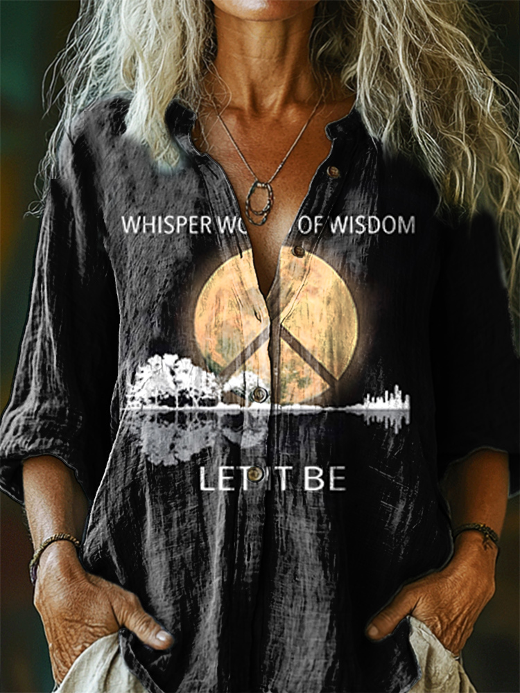 Whisper of Wisdom Pattern Art Print Cotton Linen Casual Women's Shirt