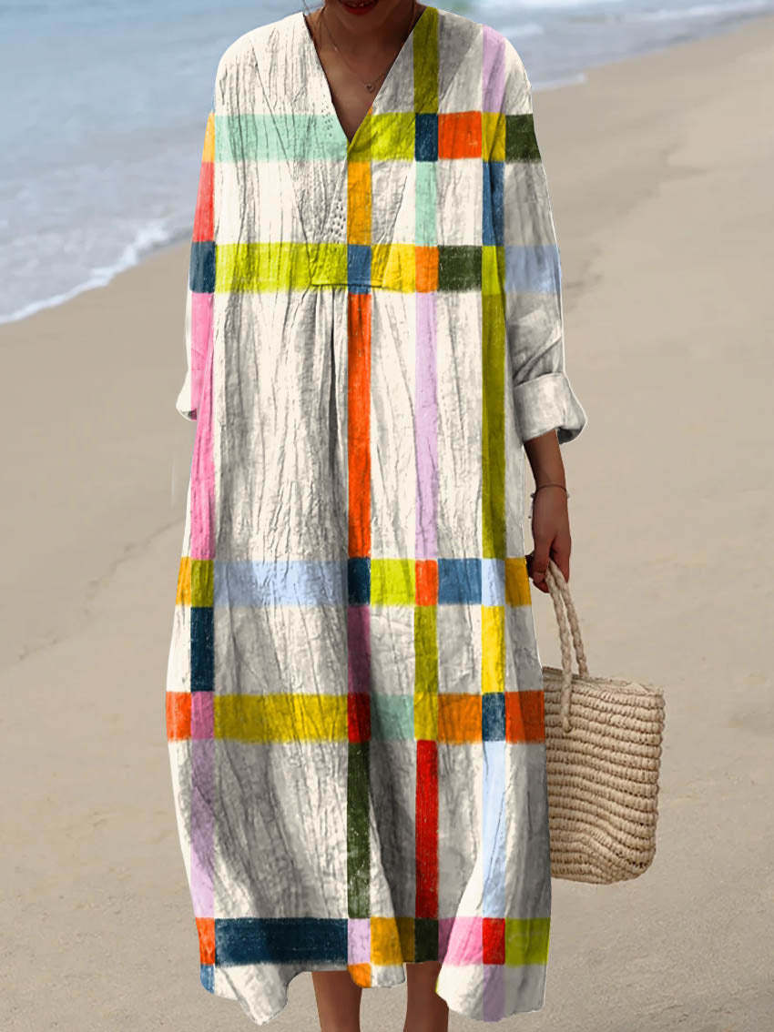 Women's Abstract Geometric Pattern Art Print Cotton Dress