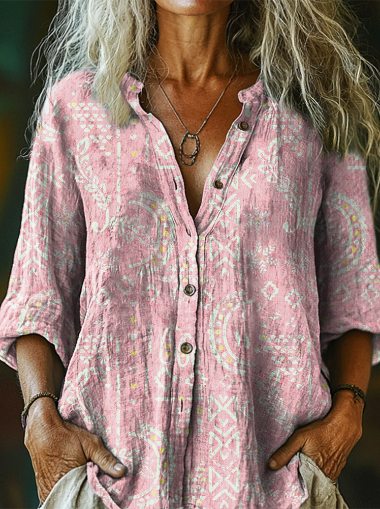 Women's Art Floral Hippie Vintage Print Long Sleeve Shirt