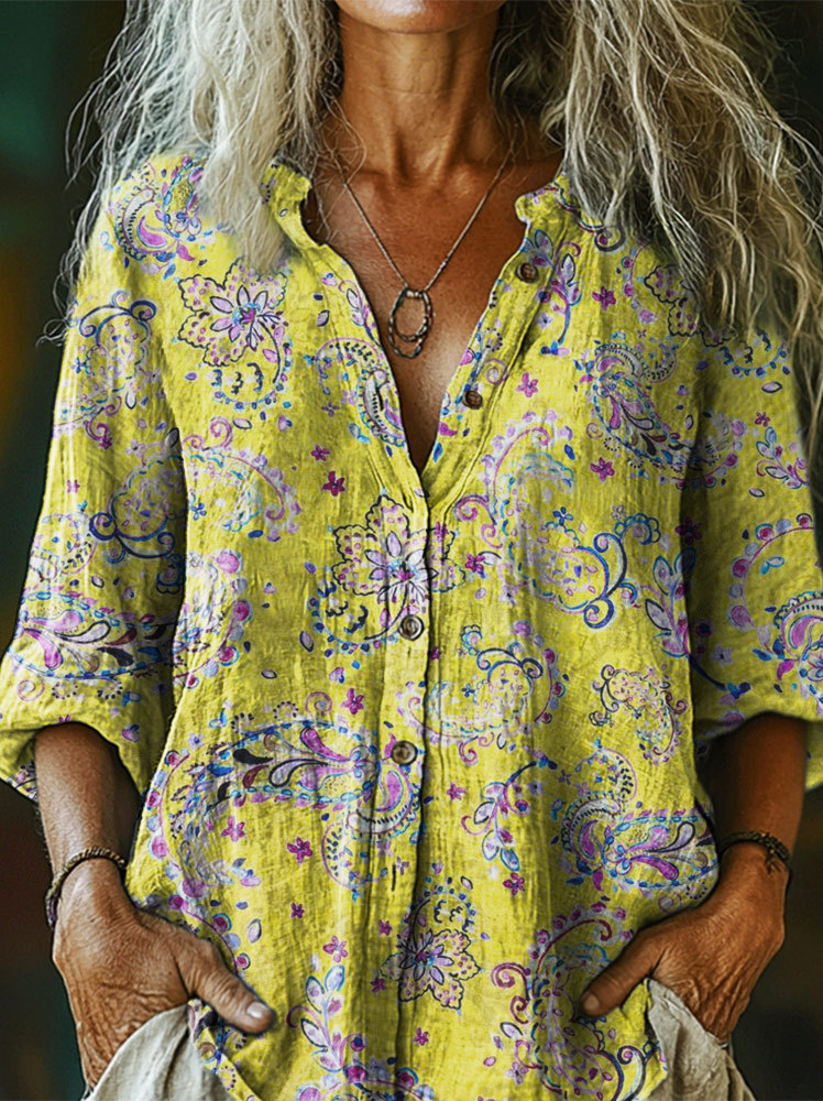Women's Art Floral Hippie Vintage Print Long Sleeve Shirt