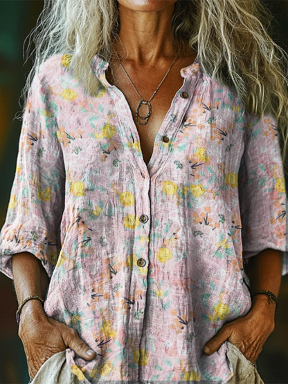 Women's Art Floral Hippie Vintage Print Long Sleeve Shirt