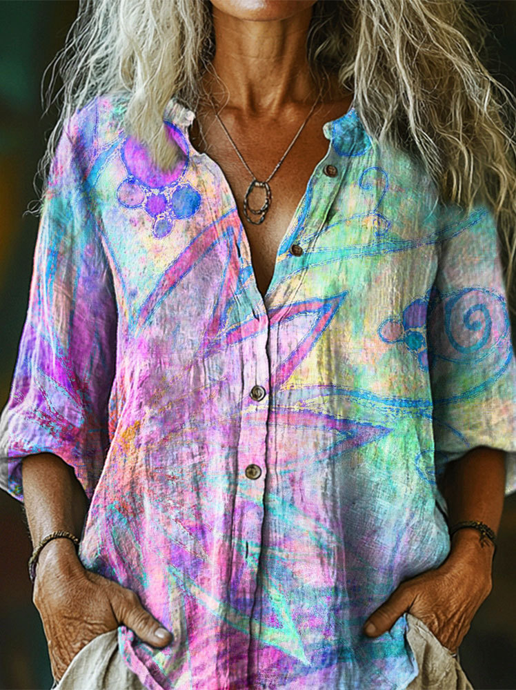 Women's Art Painting Hippie Vintage Print Long Sleeve Shirt
