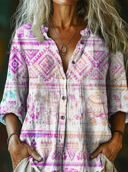 Women's Art Painting Hippie Vintage Print Long Sleeve Shirt