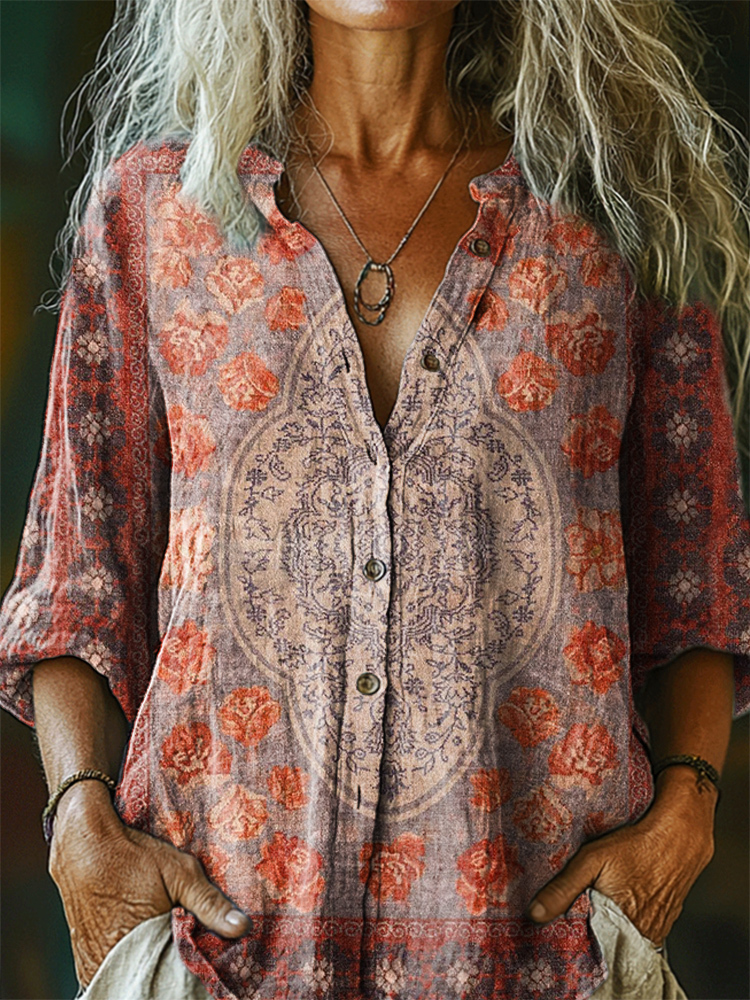 Women's Ethnic Style Tattoo Pattern Art Print Casual Cotton Linen Shirt