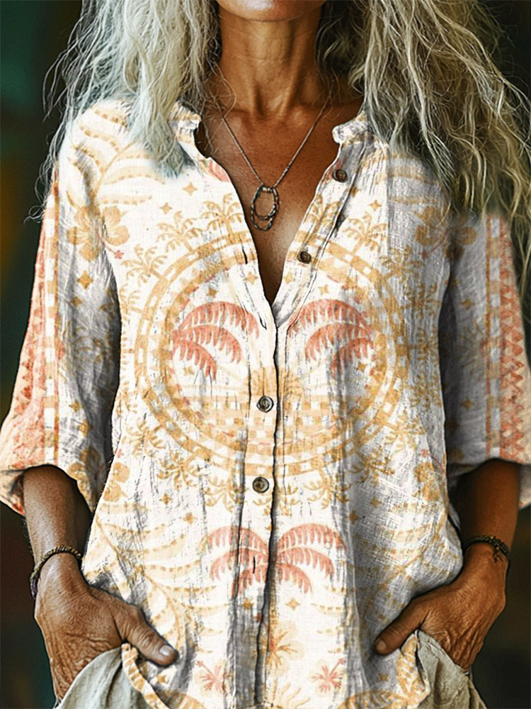 Women's Ethnic Style Tattoo Pattern Art Print Casual Cotton Linen Shirt