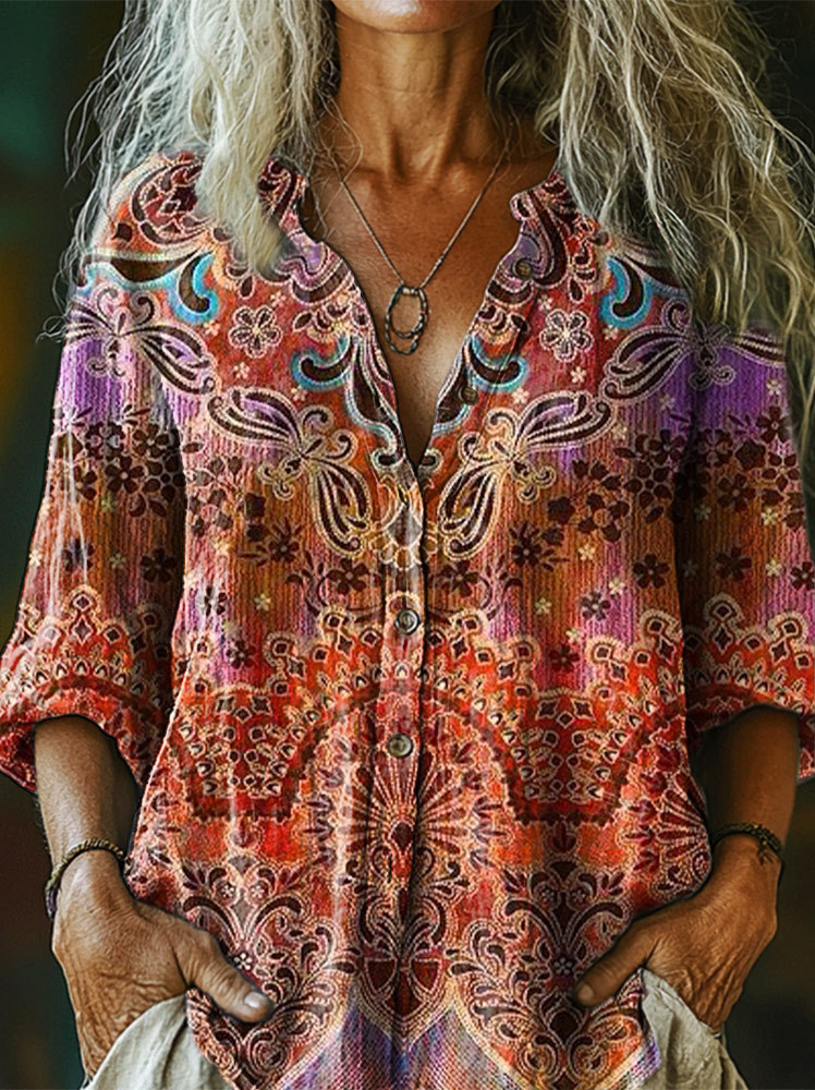 Women's Hippie Art Painting Print Long Sleeve Shirt