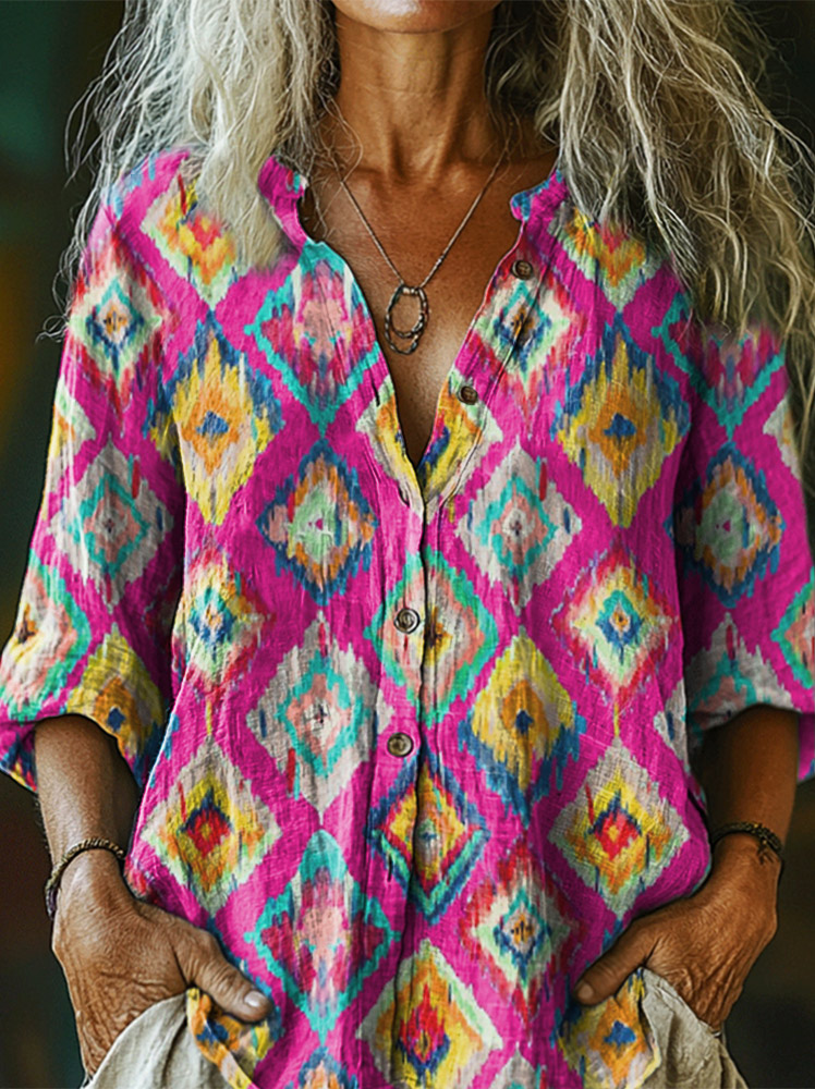 Women's Hippie Art Painting Print Long Sleeve Shirt