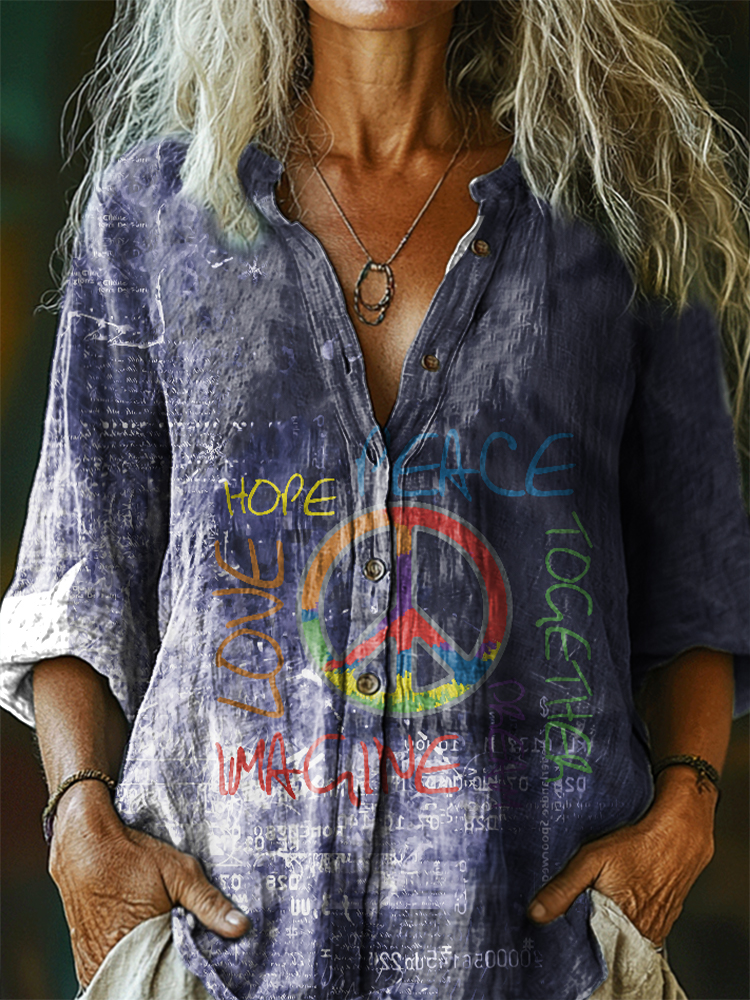 Women's Hippie Art Print Casual Cotton And Linen Shirt
