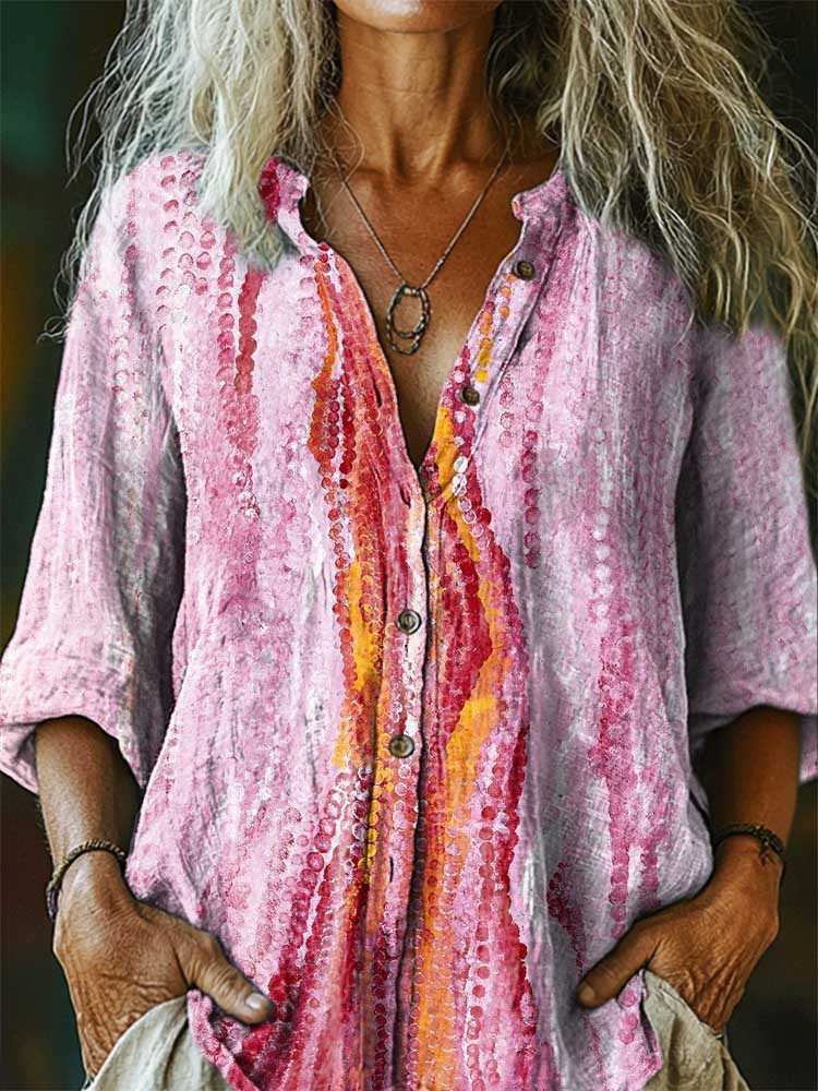 Women's Irregular Pattern Art Print Cotton Linen Casual Shirt