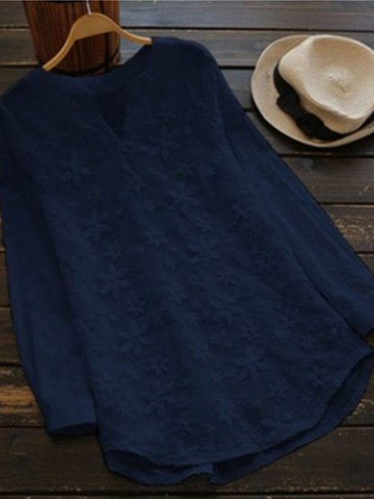 Women's lace embroidered cotton and linen long-sleeved shirt