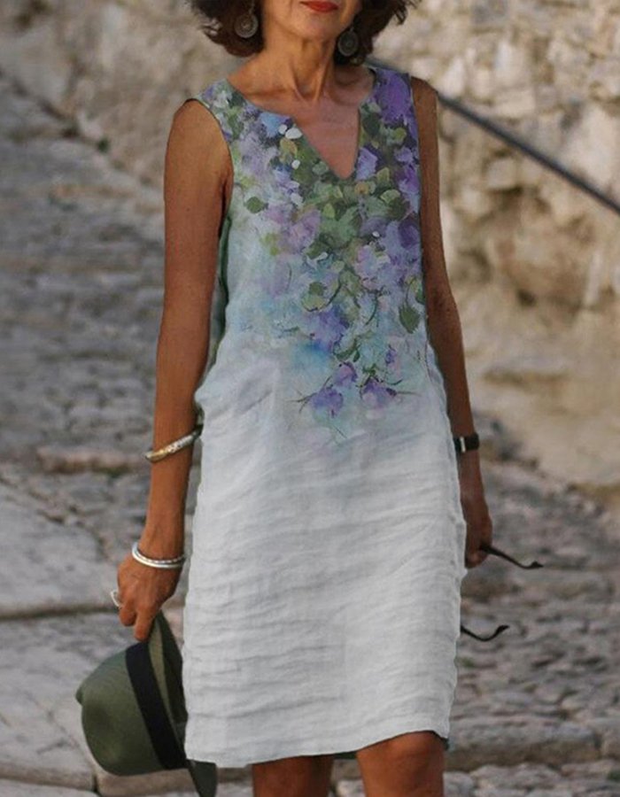 Women's Oil Painting Print V-neck Dress