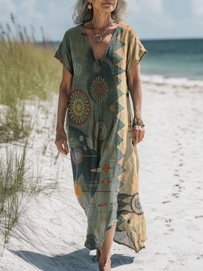 Women's Retro Pattern Art Print Pocket Cotton Dress