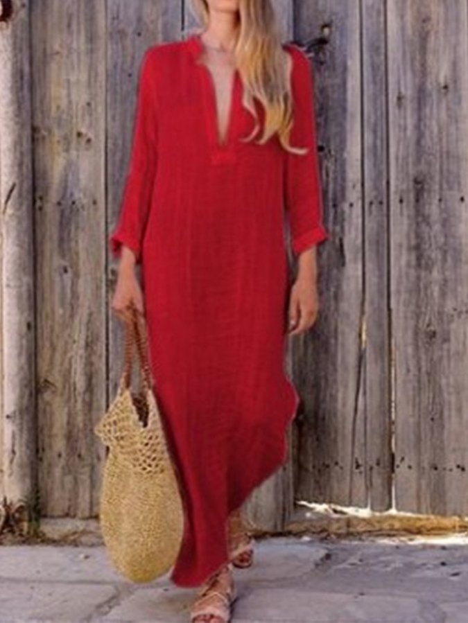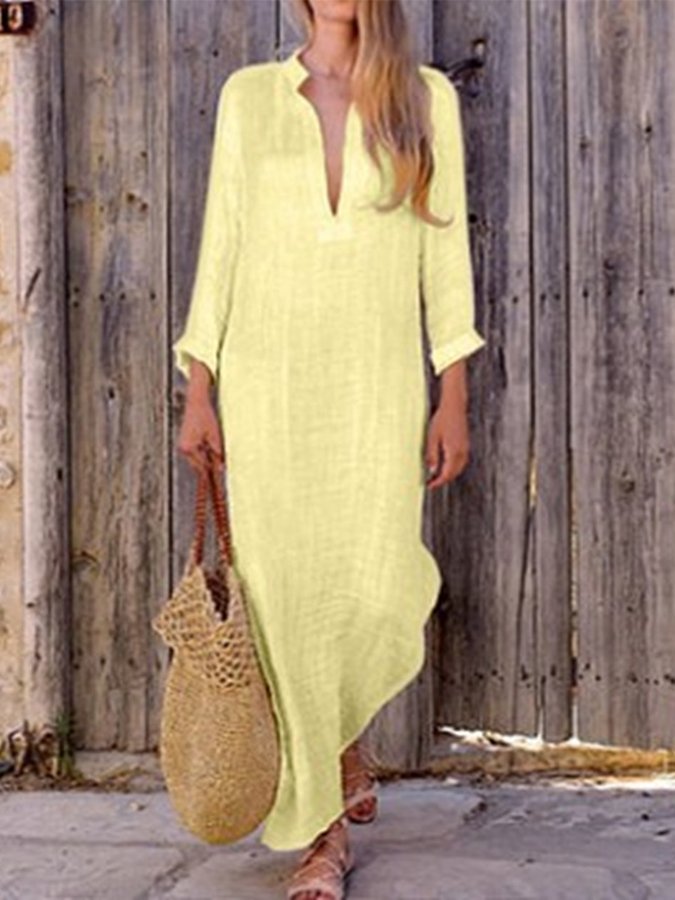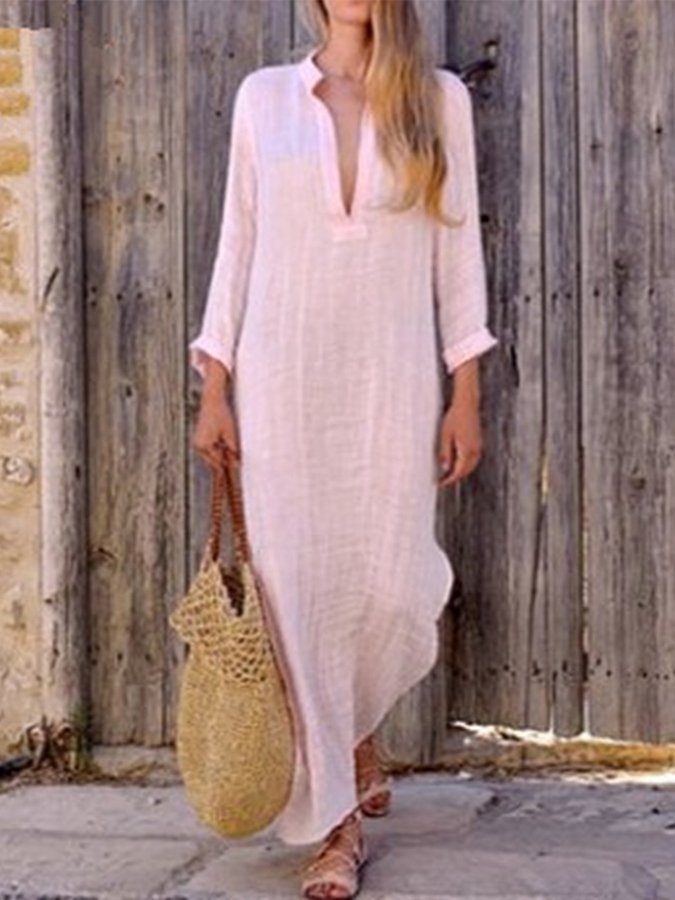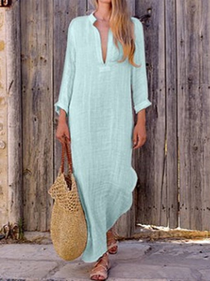 Women's Solid Color Deep V-Neck Slit Long Dress