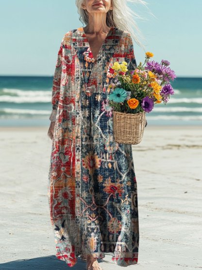 Women's Vintage Art Print Casual Dress