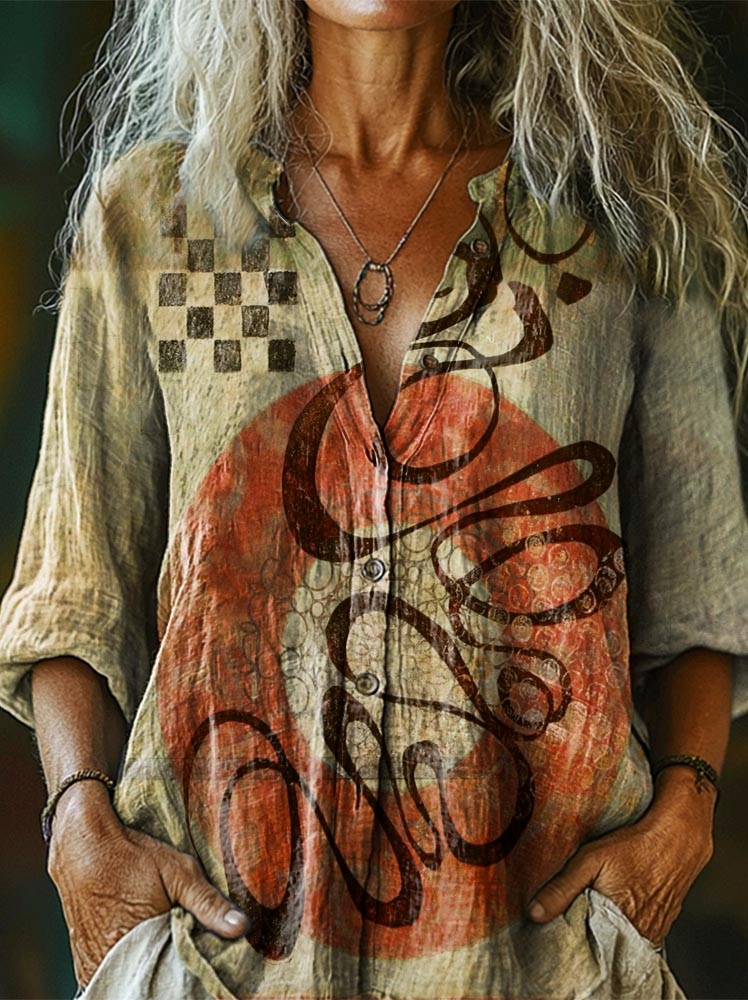 Women's Vintage Ethnic Art Patterns Print Casual Cotton And Linen Shirt