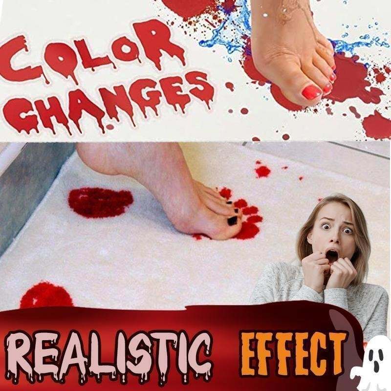 Stunning blood dripping color change effect: Try this world’s first bathroom mat, a thin plastic reel, only inductive specifications, watercolor change wet floor into the blood-red stains.