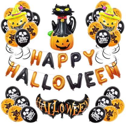 - Color: As shown. - Material: Aluminum film. - Size: Approx. 98 x 68 x 68cm. - Made of premium auminum film material, nontoxic and safe for use. - Easy to blow up, can be reused if well protected and stored. - These are large bright colored latex balloons will decorate your Halloween party in a colorful way. - Perfect for Halloween, these rubber balloons are very valuable and fantastic decorations. Packing Includes: 1 x Halloween Party Balloon Set