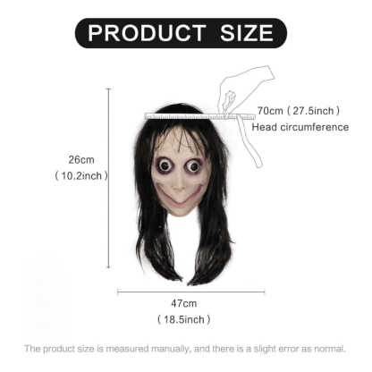 This mask boasts impeccable attention to detail. From the disheveled and lifelike strands of hair to the realistic skin texture, it's all there.Exaggeratedly curved lips, deep-set eye sockets, protruding eyeballs.... It's the perfect prank mask!
