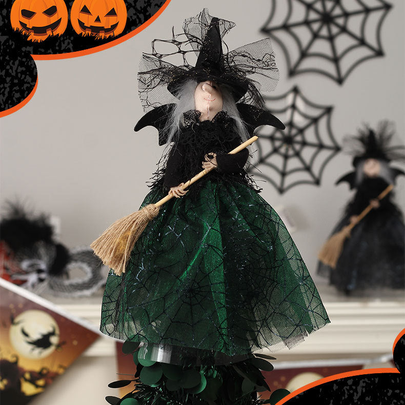 【Attractive Design】Realistic white hair with a sparkling organza skirt, and hand-painted to perfection face. Complete with a broom, she's ready to work her magic on your Halloween display.