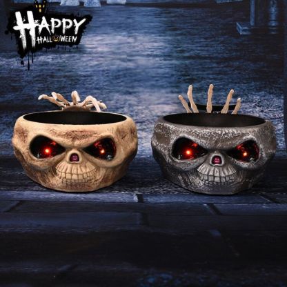 Haunted Candy Holder - Embrace the spirit of Halloween with a candy dish that combines the trick and the treat with its hidden creepy skeleton hand that pops out to scare unsuspecting candy grabbers