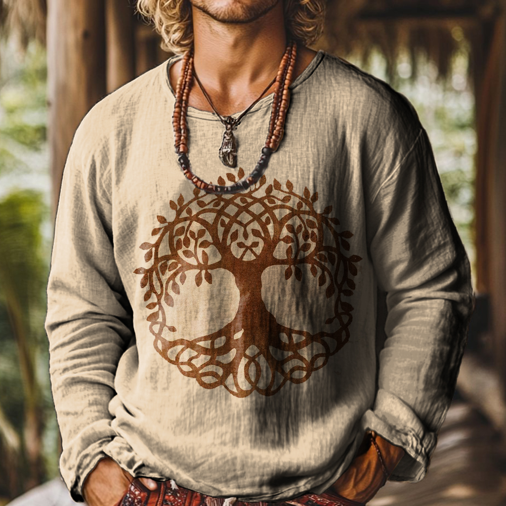 Men's Art Painting Tree of Life Vintage Print Round Neck Long Sleeve