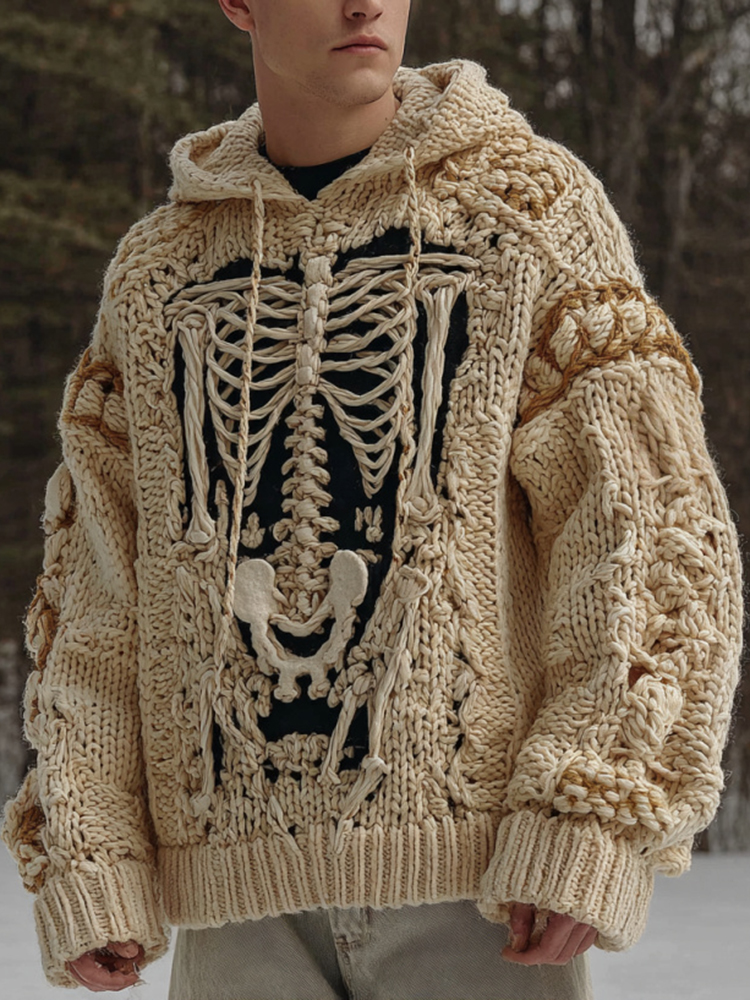 Men's Halloween Skeleton Art Knit Hooded Sweater