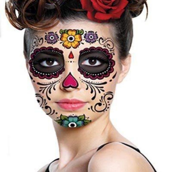 10 different unique styles of the dead face tattoo sticker. Complete your festival outfit off with these amazing stickers! Use these face sticker along with glitter to accent your beautiful makeup