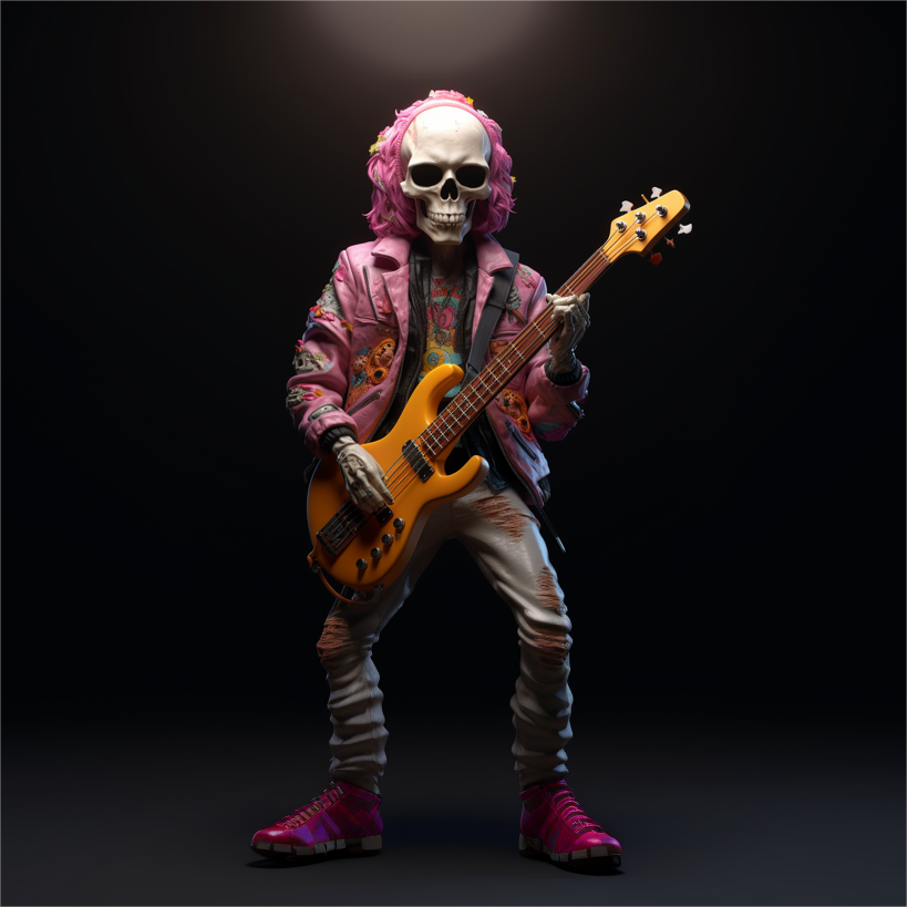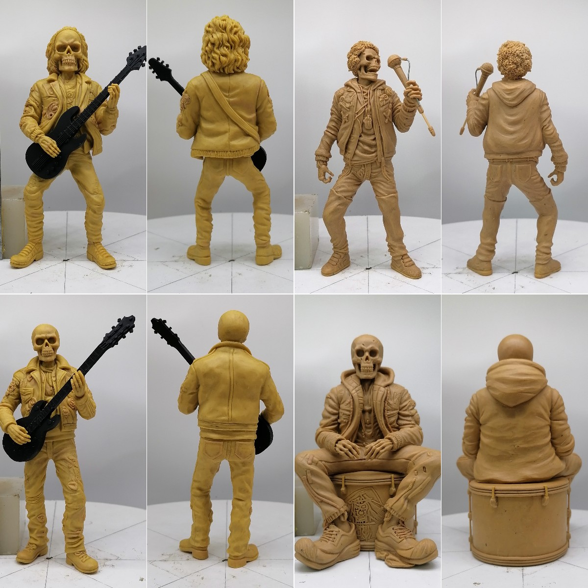 This skull sculpture looks really cool and it's an impressive decoration. Skulls represent death and the transience of life, and this sculpture presents this theme in a fun and fashionable way.This collection of four statues is presented in 1/12th scale and is hand painted. They show the members of the band mid-show with their instruments: guitar, drums, bass and microphone.