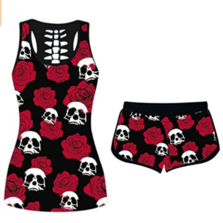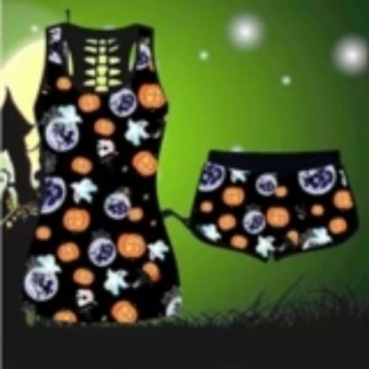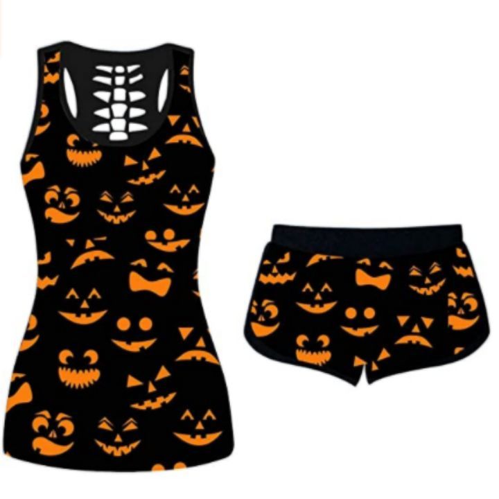 : casual, Halloween , short sleeve t-shirt sets, Elastic shorts, Summer beach tops, Loose Fit,suit for hoilday.