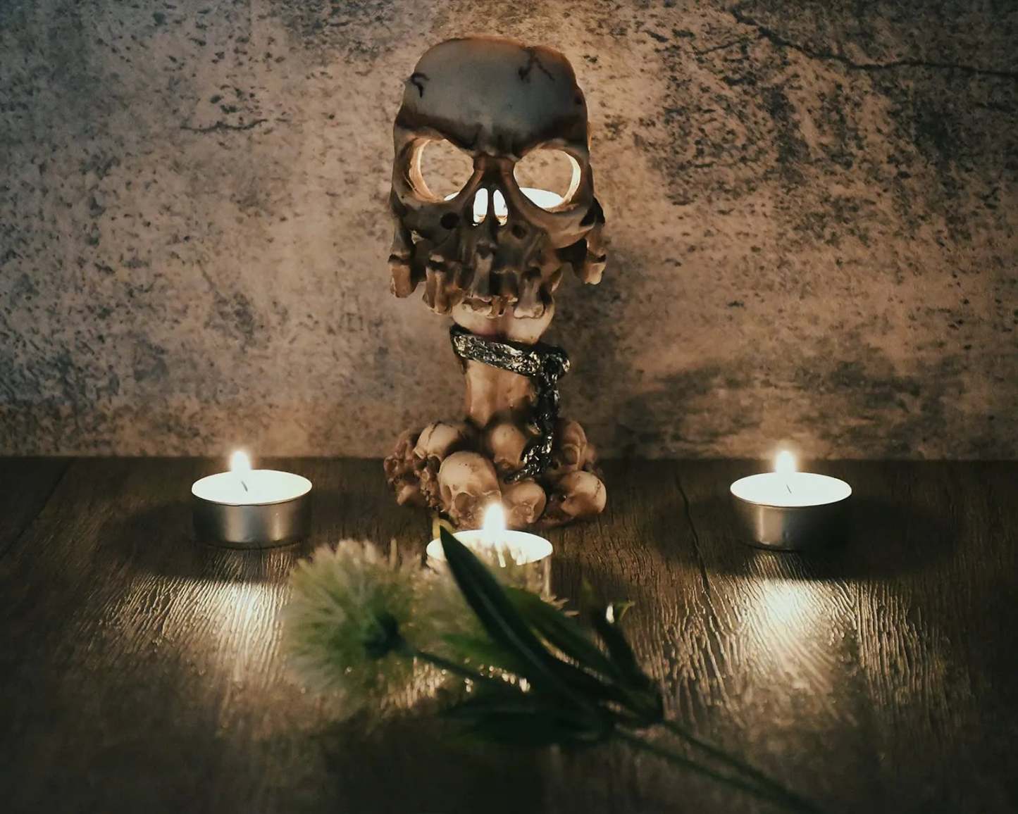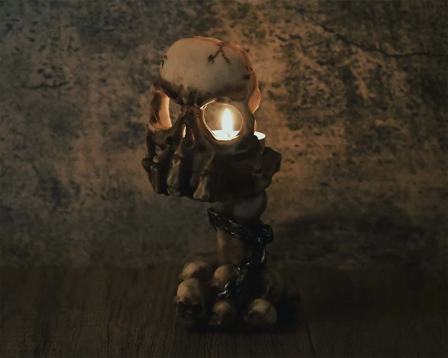 Made of solid resin, this tea light candle holder is built to last and adds a touch of eerie elegance to any setting.