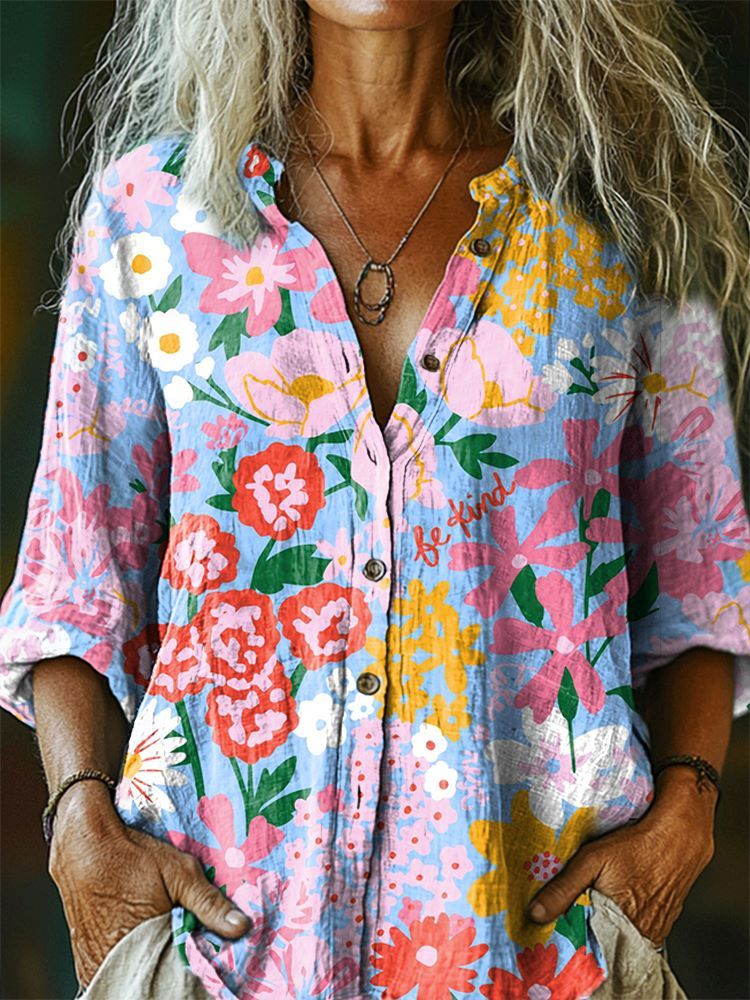 Women's Floral Pattern Art Print Casual Cotton Linen Shirt